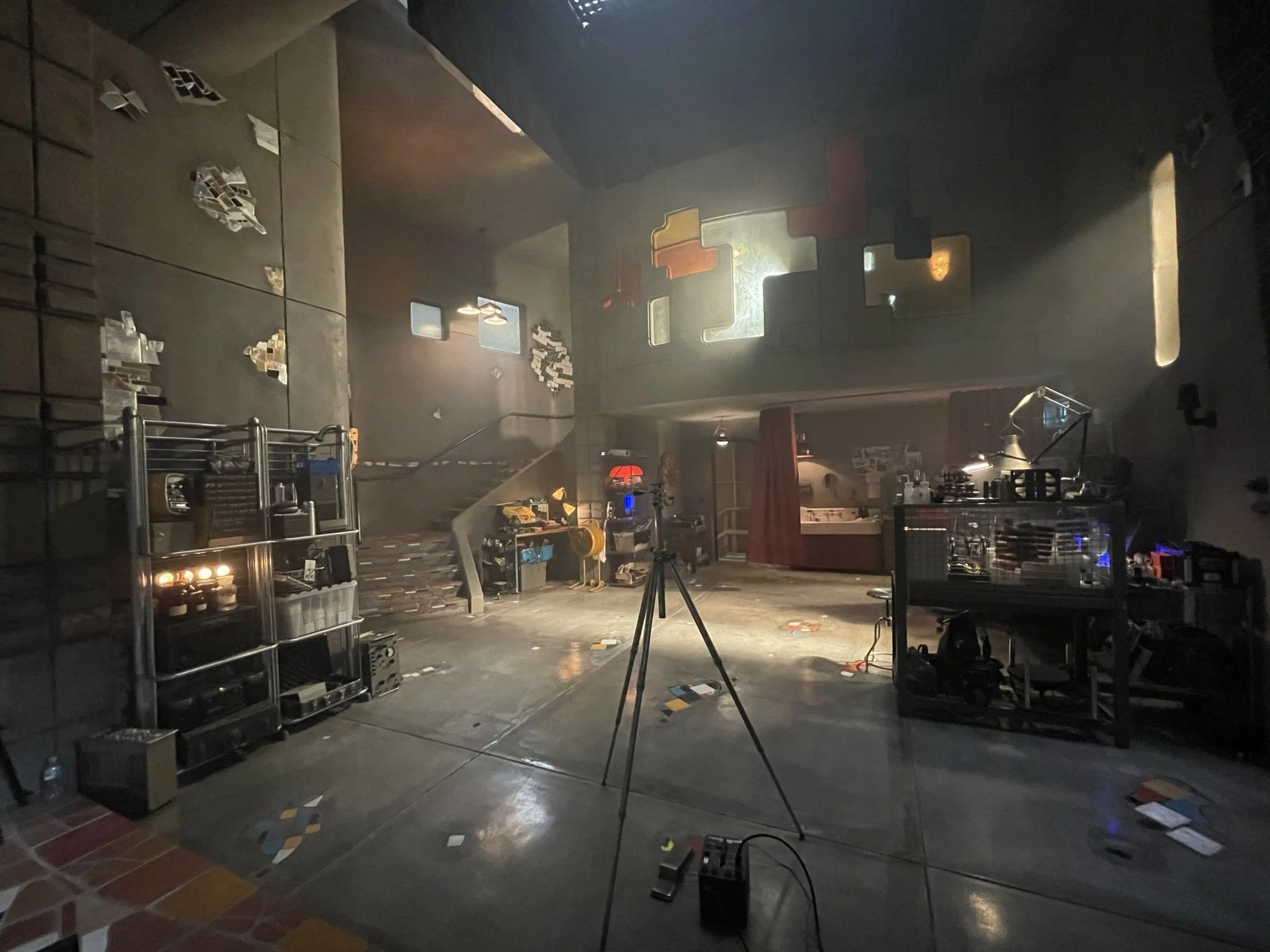 In the script this set was slugged as INT Workshop. We knew the rough outline of the scene but had to develop a set that could help flesh out the sequence both by bringing life to a character that hadn’t been defined yet and provide opportunities to deepen the action. The exterior was to be shot at Hundertwasserhaus in Vienna. The brief from Dennis was to take the ecclectic style of Hundertwasserhaus and combine it with Frank Lloyd Wright’s Storer house. Early on, Art Director Lauren Rosenblum came up with basic layout: entrance into a living room that branched off into a hallway that overlooked the workshop. This layout was the one thing that remained consistent as we figured out how to mash these two things together.