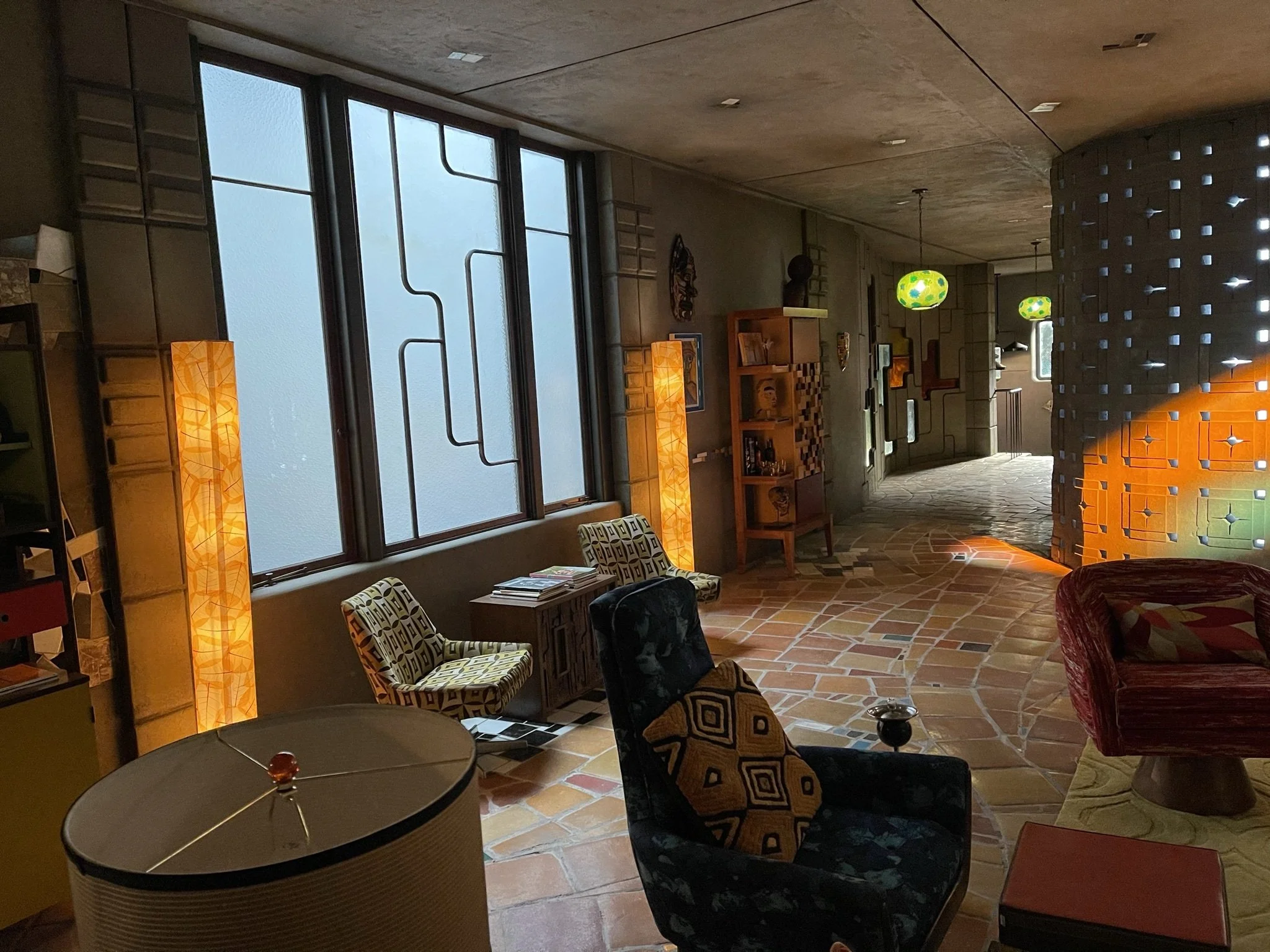 Our first iterations leaned far too heavily on the Storer house and Frank Lloyd Wright. They missed the colorful overlay that we were going for. They were a good place to start as they gave us a disquieting base to layer our more eclectic elements on top off but we still had a way to go before we found the right balance between fun and foreboding.
